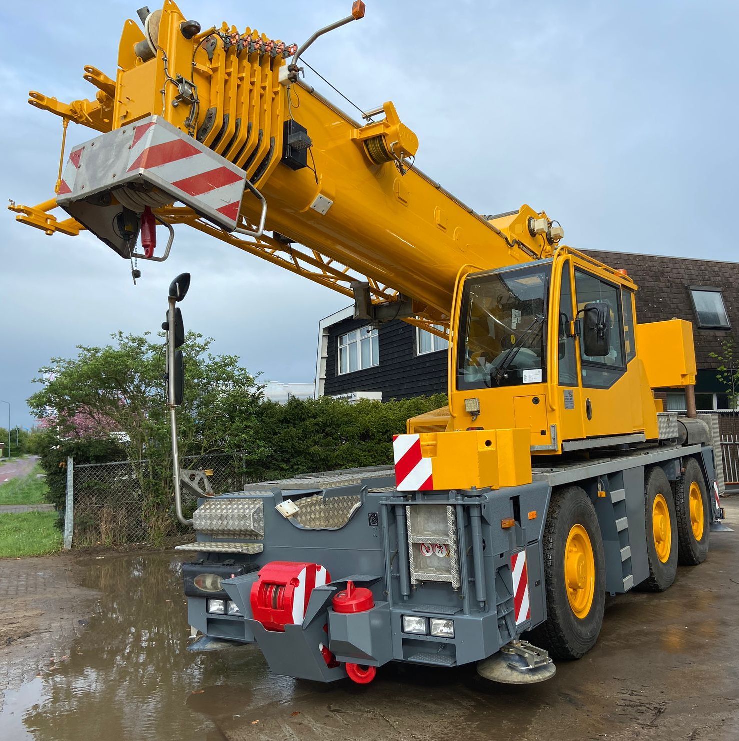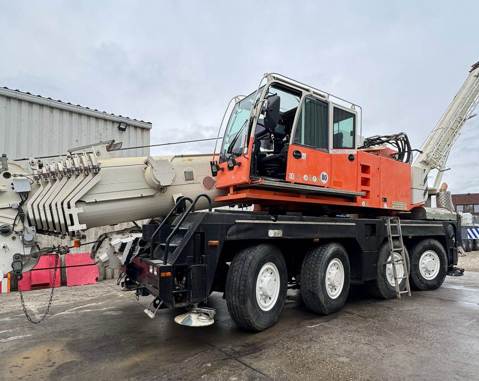 La gru tuttoterreno con braccio telescopico Demag AC 50 ha una capacità massima di 55 tonnellate e una lunghezza massima del braccio principale di 40 m, estendibile fino a 57,6 m.