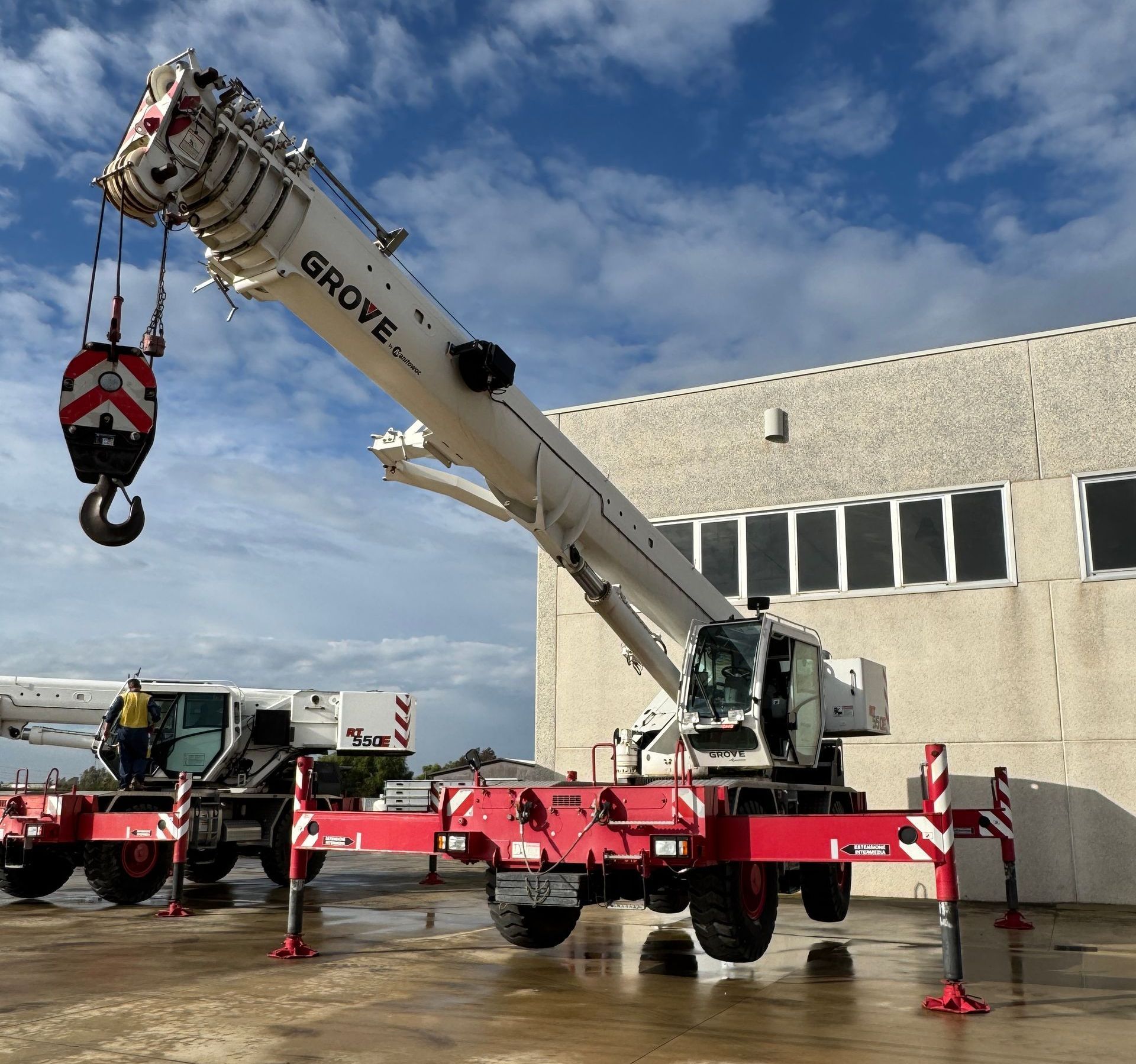 Grove RT 550E: compatta, potente e sicura! 39 m di braccio MEGAFORM, il più lungo della sua categoria; cabina full vision; stabilizzatori a steli rovesciati; nuovo Manitowoc CCS.
