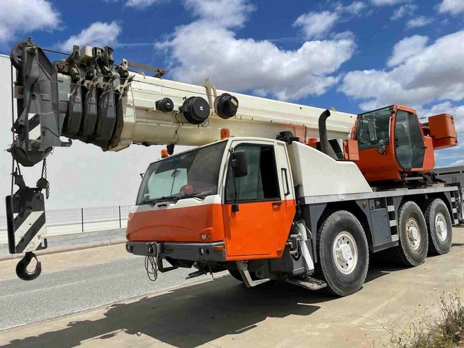 La Terex-Demag AC 60 City è una gru mobile compatta e versatile, ideale per lavori in spazi ristretti e cantieri urbani. Montata su telaio a 6 ruote motrici (6x6), offre una buona mobilità e manovrabilità. La capacità di sollevamento massima è di 60 tonnellate, con un braccio telescopico che può raggiungere i 40,2 metri. Il modello AC 60 City è apprezzato per la sua compattezza, che le permette di operare efficacemente in aree urbane con spazio limitato.